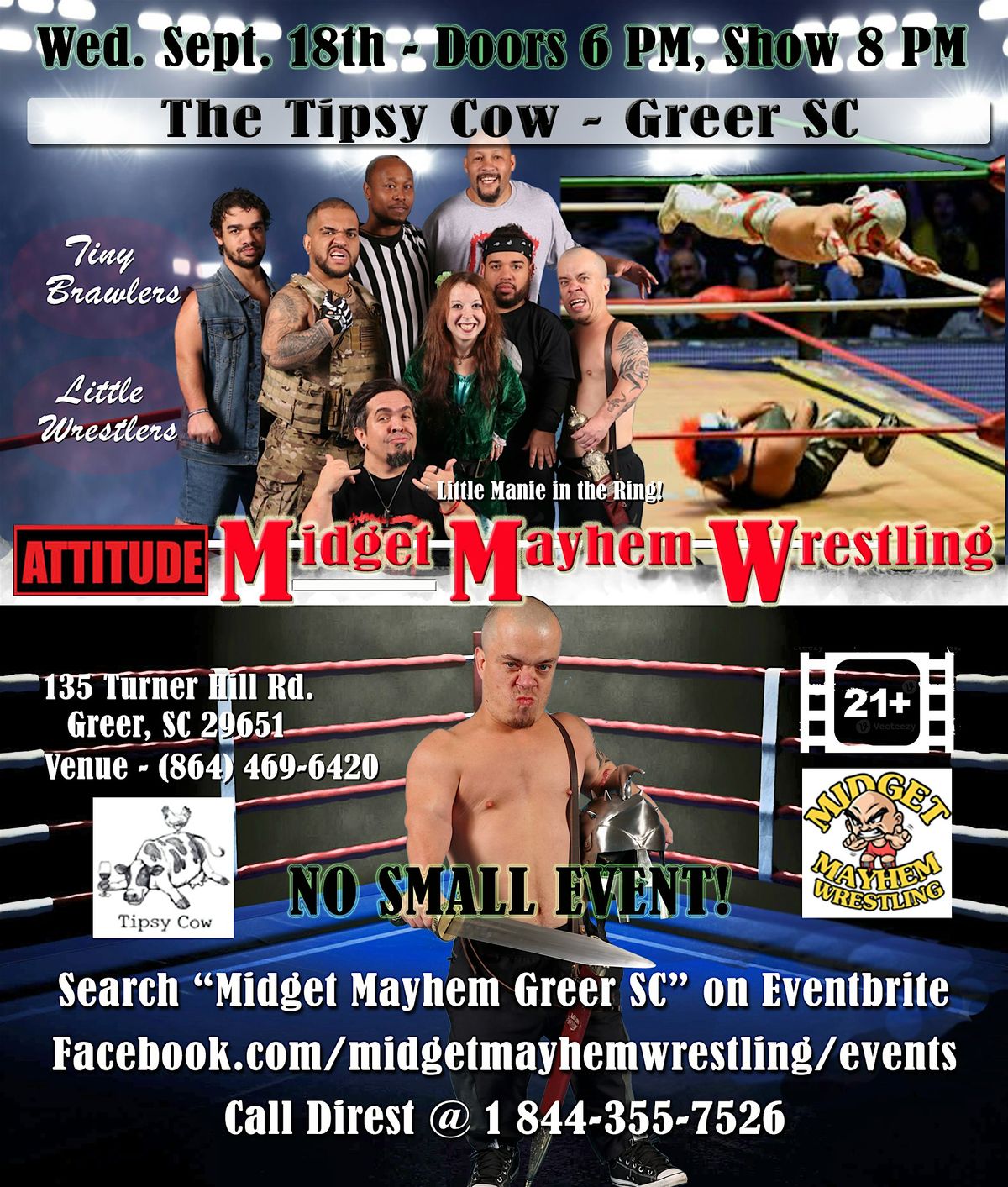 SEE THE MINI-KICKS, PUNCHES AND BODY SLAMS WITH OUR MICRO-DWARF MIDGET ENTERTAINERS IN GREER, SOUTH CAROLINA!About this Event