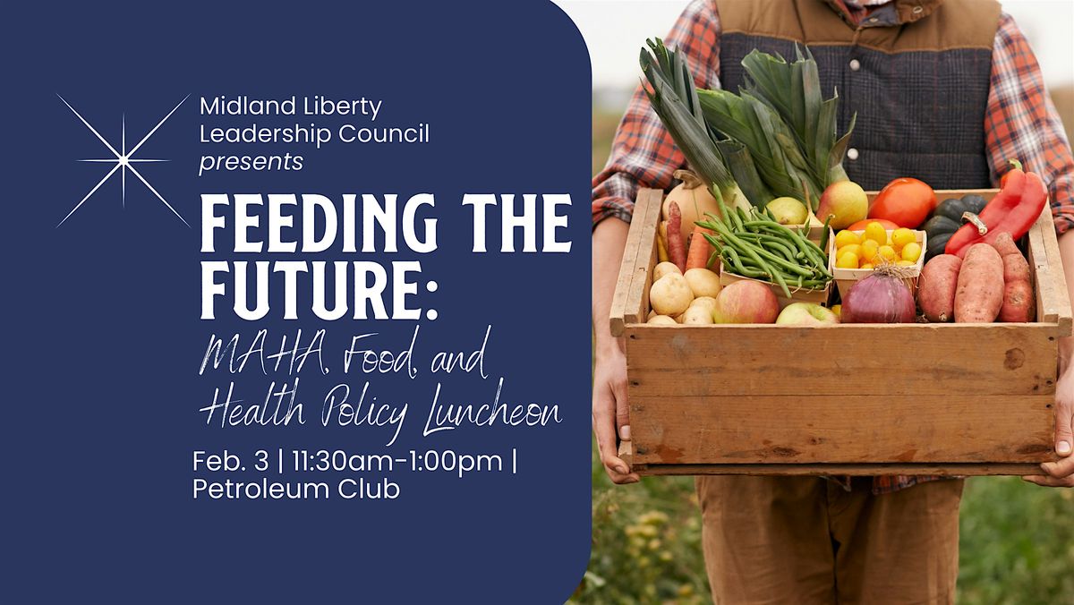 Join the Midland Liberty Leadership Council* (LLC) and fellow young professionals at the Petroleum Club for an engaging event focused on the intersection of food, agriculture, and health policy. We’ll explore how recent national MAHA (Make America Healthy Again) victories are paving the way and take a deep dive into what the policy outlook looks like here in Texas. With the 2027 legislative session on the horizon, what bills should we be watching and what can we be doing now to help shape outcomes?