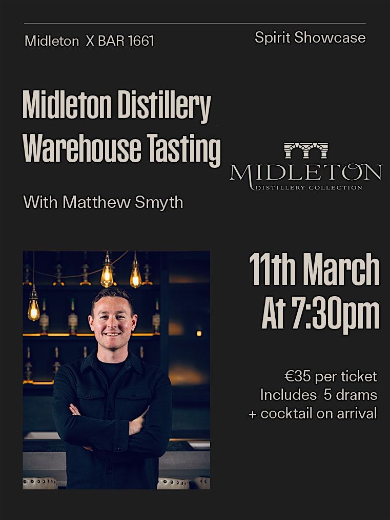 Hosted by Matthew Smyth, this experience explores the depth and precision behind Midleton Distillery. Guests will taste a curated selection of expertly crafted samples, drawn directly from the warehouse, offering a rare insight into maturation, character, and craft.