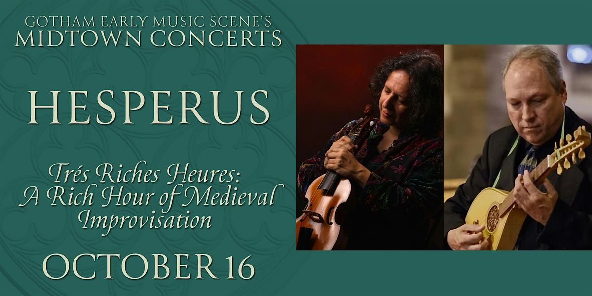 HESPERUS celebrates its reincarnation as an early music improv collective with a program of twelve medieval improvisations inspired by a dozen manuscript illuminations from Les Très Riches Heures du Duc de Berry. Tina Chancey and Mark Rimple present a varied program spanning the high Middle Ages through the dawn of the Renaissance.