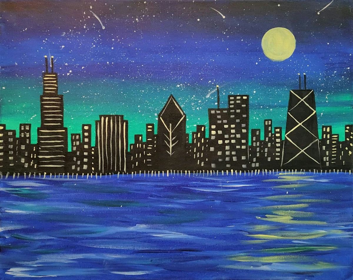 We look forward to seeing you soon!(We will be painting this Starry Night Skyline painting shown, however you are welcomed to switch up colors and get as creative as you like)