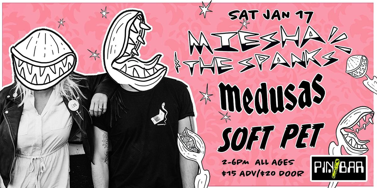 Local garage-rockers Miesha and The Spanks with riot grrrl punks The Medusas and punky art-rockers Soft Pet at Pinbar for all ages show
