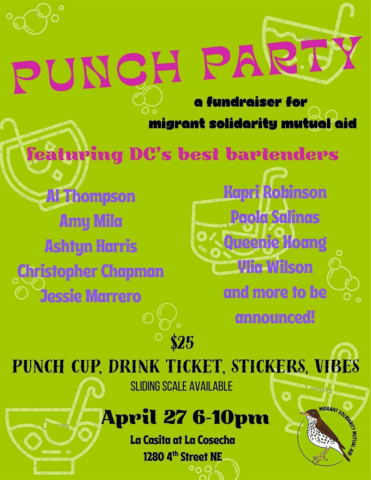 Join us at La Cosecha on Monday, April 27 from 6-10 pm to drink delicious punch and toast to Migrant Solidarity Mutual Aid! Our four year anniversary fundraiser will deliver 100% of profits to MSMA!