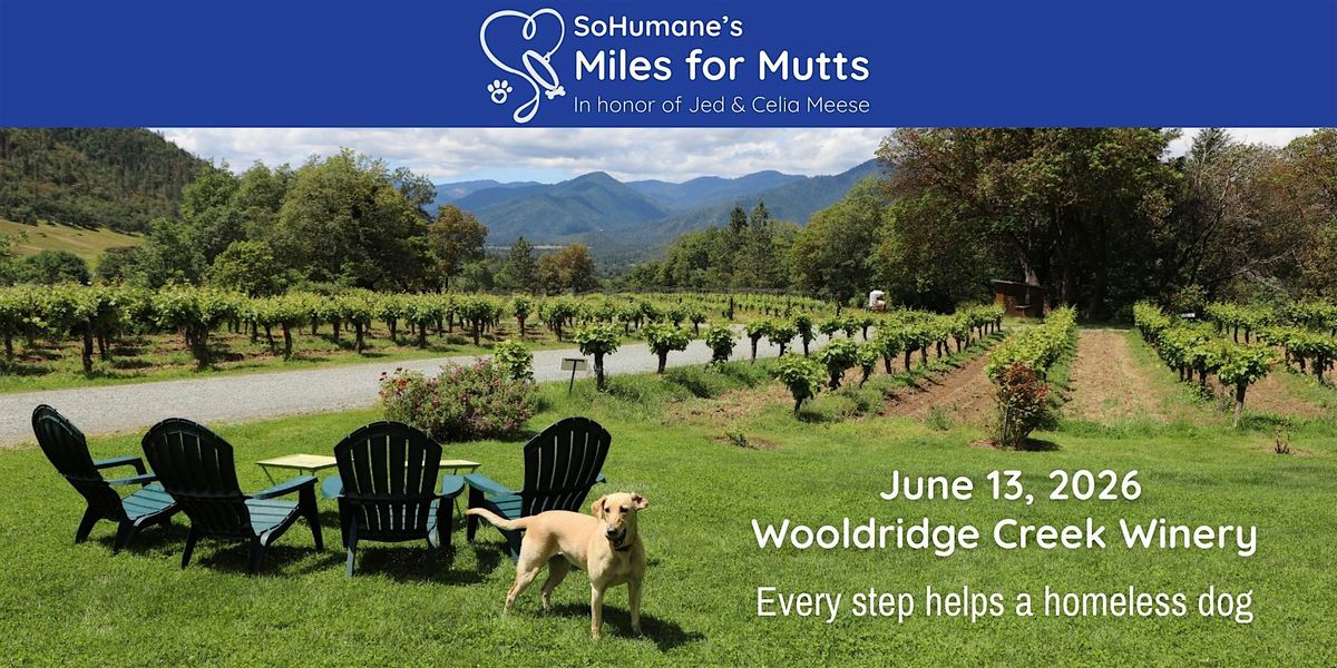 Rooted in the heart of the Applegate River Valley in Southern Oregon, Wooldridge Creek Winery sits on a rolling hillside overlooking the valley — and Miles for Mutts takes full advantage of every bit of it. You will be blown away by the views and delighted by the fun afternoon atmosphere! The walk features an easy, leisurely route across paths and grass as you weave your way through one of the most beautiful winery settings.