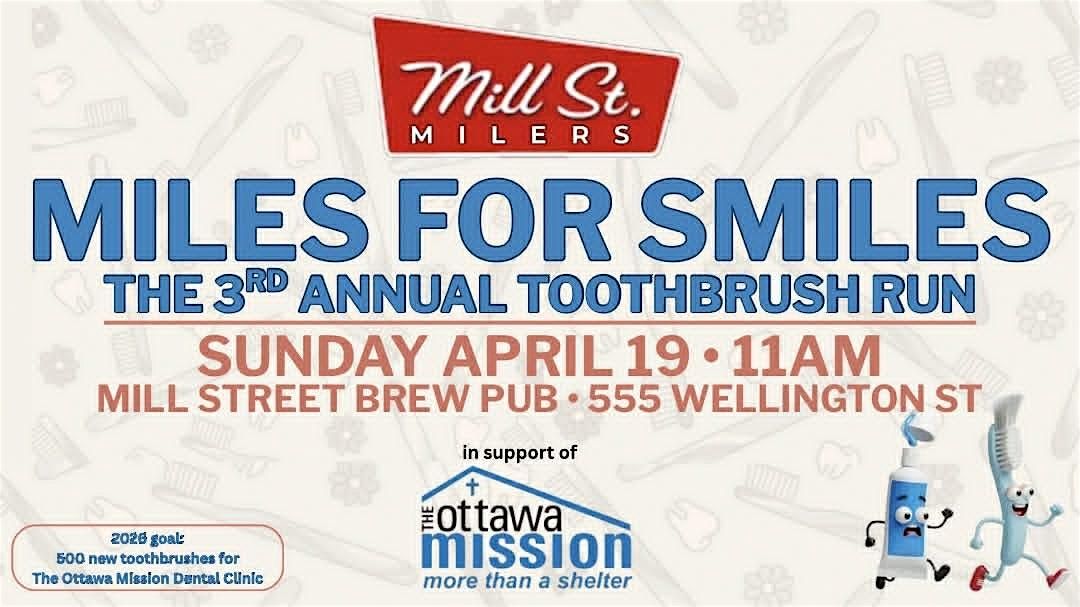 Join Mill Street Milers as we bring the run community together for one special April morning to collect new toothbrushes for The Ottawa Mission Dental Clinic: