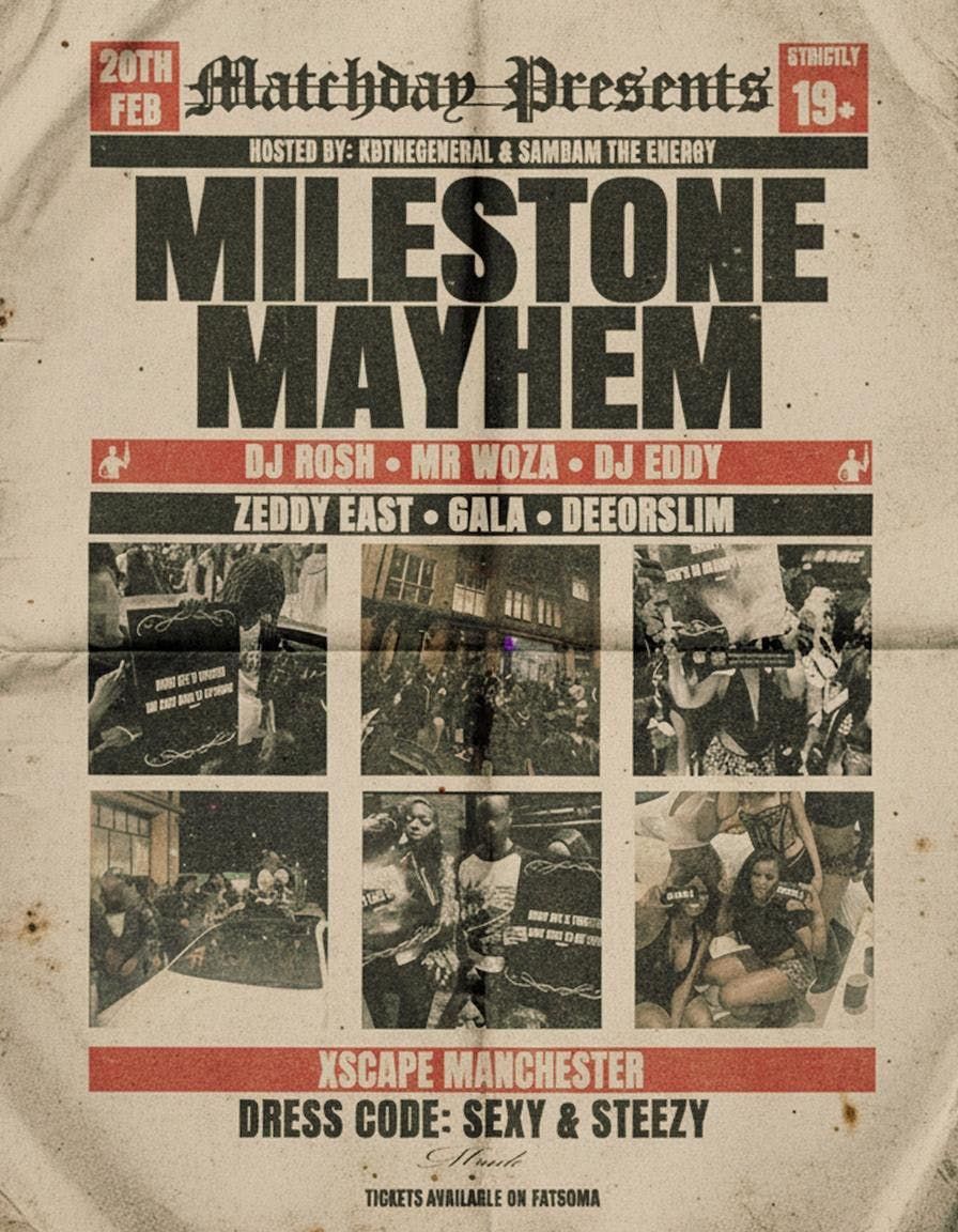 Get ready to celebrate big moments with even bigger energy at MILESTONE MAYHEM β a night dedicated to wins, growth, and unforgettable vibes. Join us on Friday 20th February 2026, from 10PM β 4AM, as Xscape Manchester turns up for a full-scale nightlife takeover.Expect a powerful mix of Afrobeats, HipHop, Amapiano, RnB, and Dancehall, a high-energy crowd, and nonstop music from start to finish. Whether itβs a birthday, achievement, or just life itself, this is the perfect night to celebrate in style.Come party with ZEDDY EAST, GALA & DEEORSLIM