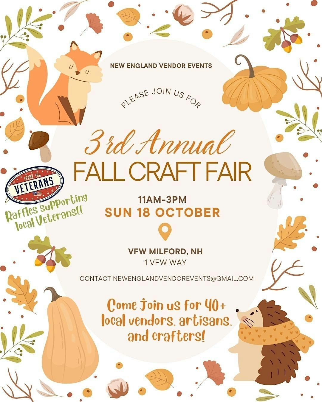 Come on out for a fun-filled day- we have over 40 local vendors to shop and raffles to support the veterans!