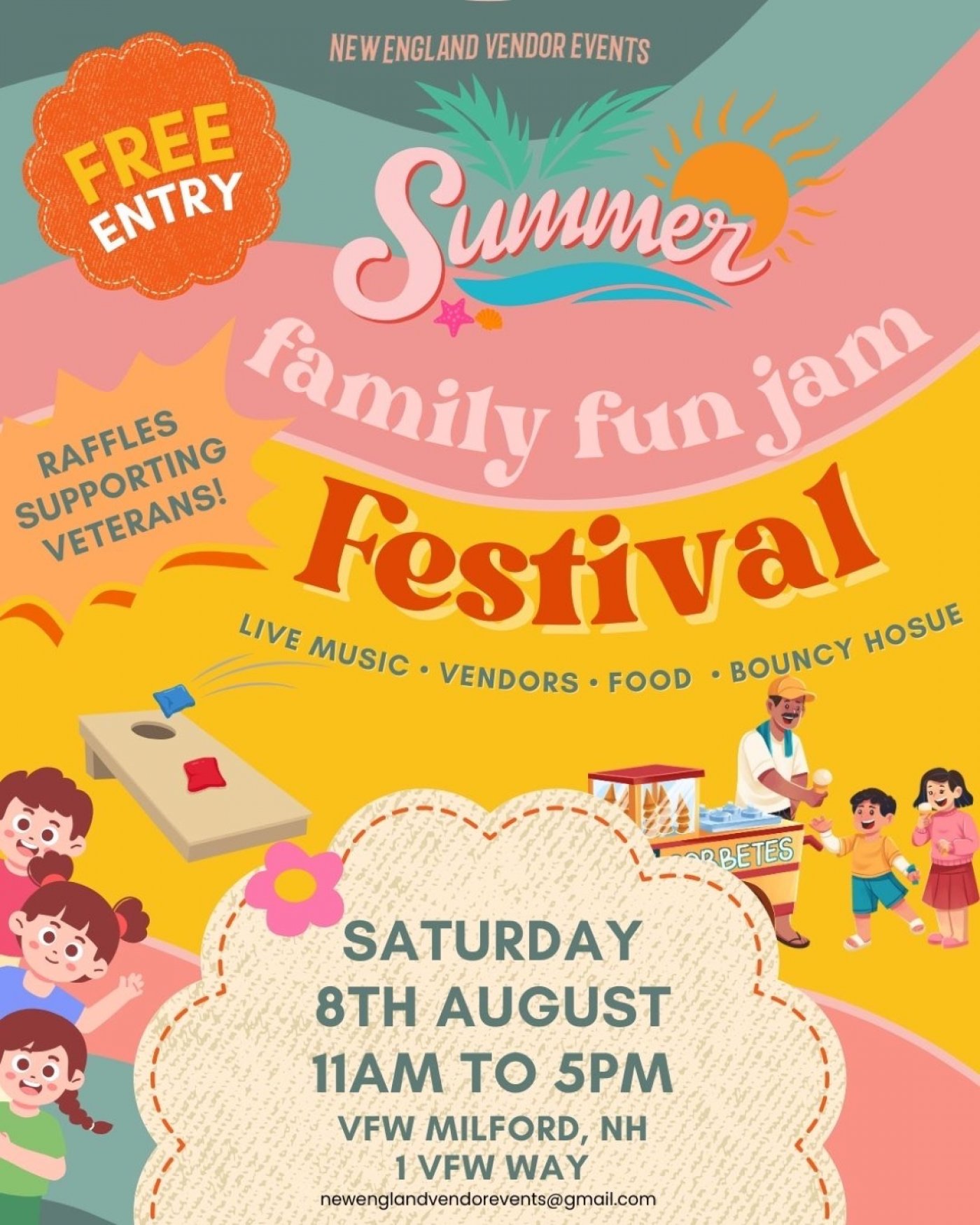 Free to attend. A fun-filled day for all ages to enjoy live music, vendors to shop, food, activities and raffles to support the veterans!