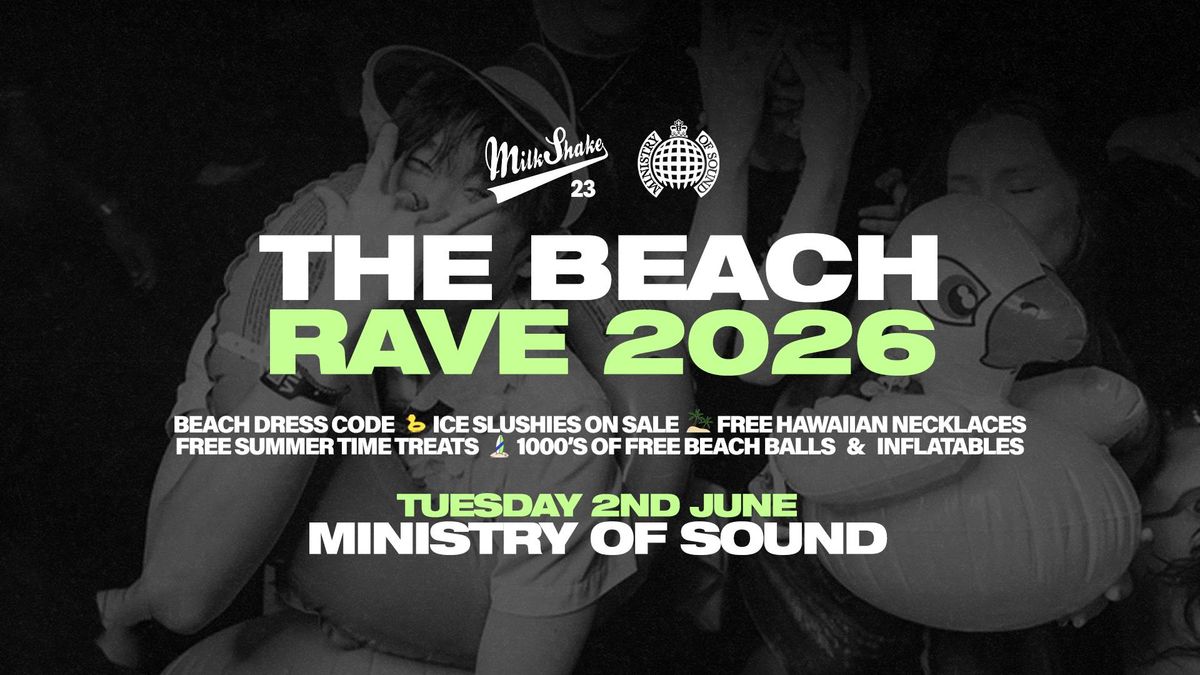 Milkshake, Ministry of Sound Presents: ⊹✮.*🌊:.𖥔 THE BEACH RAVE⊹*🌊:.𖥔Tuesday June 2nd 2026 🌞Ministry of Sound Club 10:30pm-4amBack after many years buried in the sand, The Milkshake Ministry of Sound BEACH PARTY 🏖️