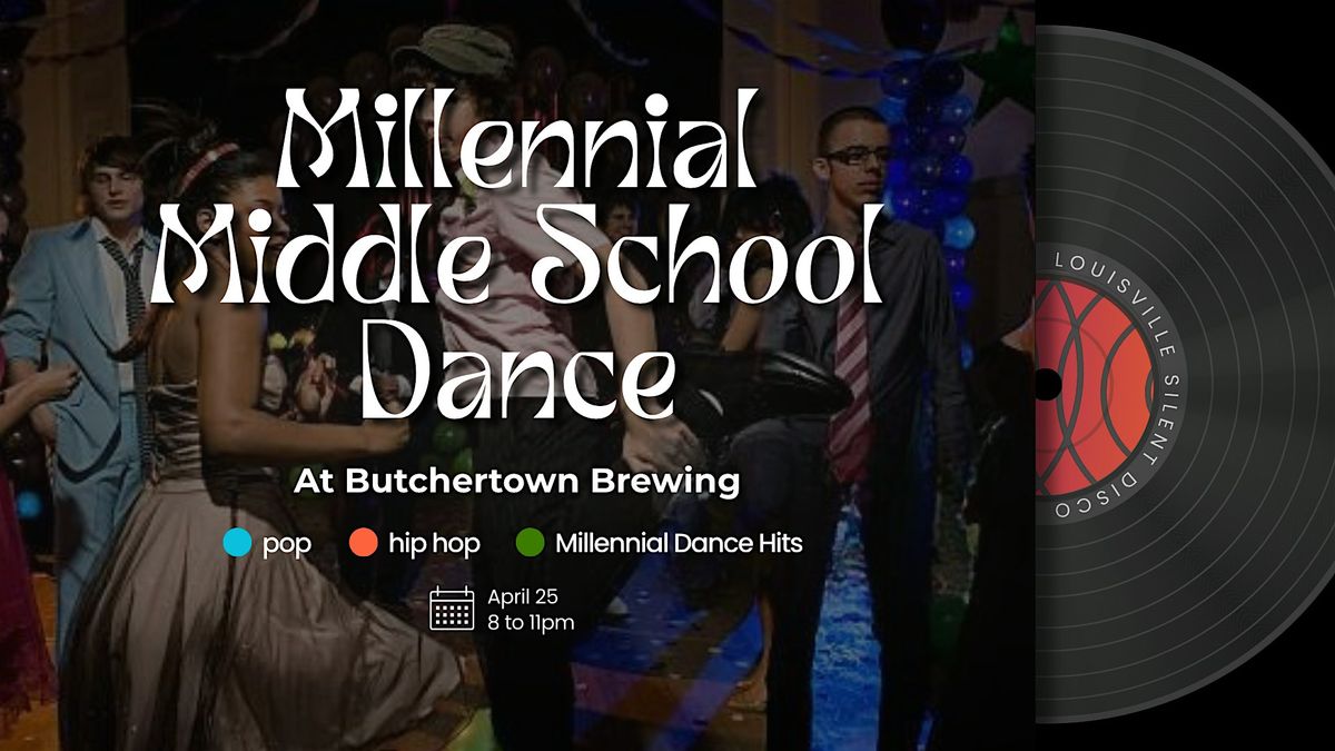 Join us at Butchertown Brewing on April 25th for a very special Millennial Middle School Dance Silent Disco! Thanks to all of you incredible voters, we've got a special new theme that promises to be a blast! We've got a combination of pop, hip-hop, and all the bangers you know and love from your Millennial Middle School era. It'll be a perfect throwback to the days of butterfly clips, ill-fitting dress shirts, and certified radio BANGERS (we really did have the best music, didn't we?)! We can guarantee it won't be AS awkward as those middle school days, and there definitely won't be any chaperones! Ask your crush before it's too late and we'll see on the dance floor!