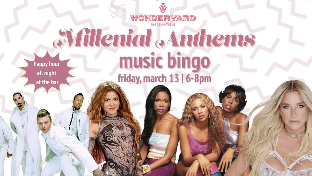 Grab your crew and your favorite throwback energy—Millennial Anthem Music Bingo is taking over Wonderyard from 6–8PM.