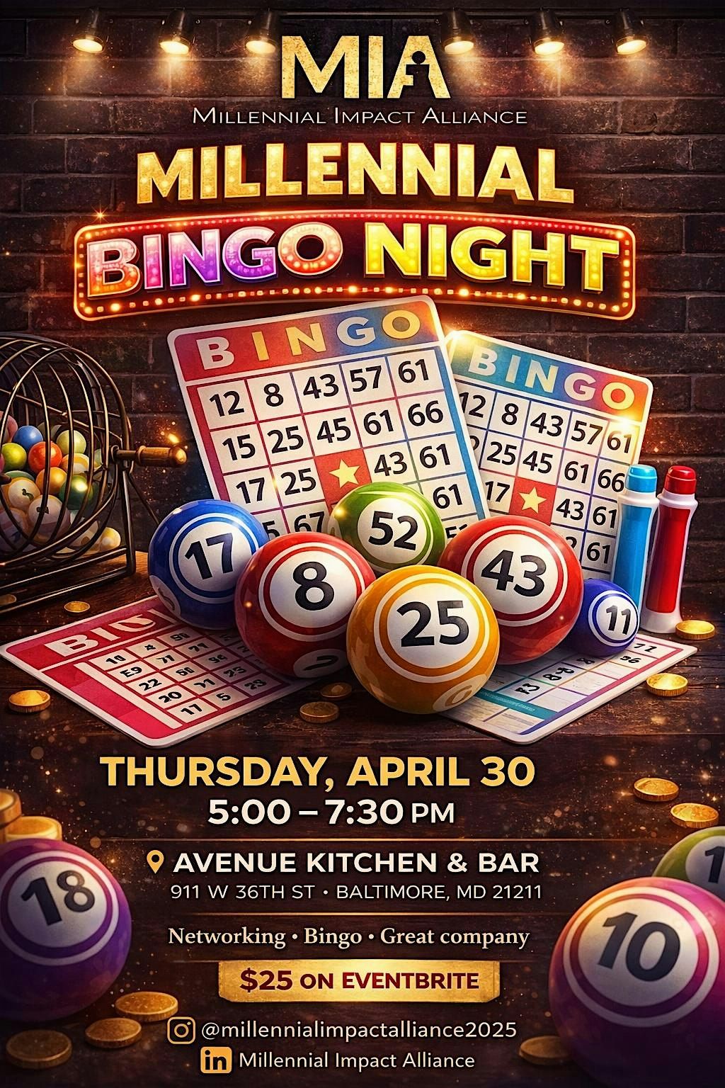 Join Millennial Impact Alliance (MIA) for a fun and relaxed evening of networking, community, and bingo!