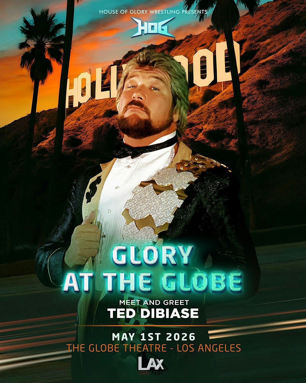 LAX Fan Fest Proudly Present WWE HOF The Million Dollar Man Ted Dibiase at House of Glory Los Angeles from 5pm-8pm. He will be taking photo ops only at the table and signing autographs. Due to time constraints there will be no interviews allowed. You can purchase pre sale tickets in advance. Please note pre sale prices for autographs will not be the same price on the day of the signing. So Don't Delay ! You must purchase admission to enter the venue. Visit https://www.hogwrestling.net/ for admission tickets.