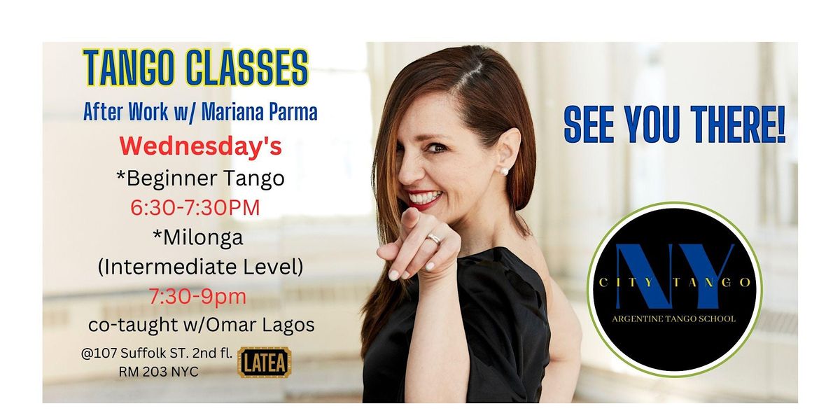 Come join us for a Milonga (Intermediate) Class after work. Argentine Tango, consists of 3 rhythms: Milonga, Tango, and Vals. They all have similar step patterns but the rhythm of each is different. This class will focus on understanding the Afro. based rhythm, called Candombe. Milonga, the first rhythm created, with an accentuation the fast stacato tempo. Class will focus on: