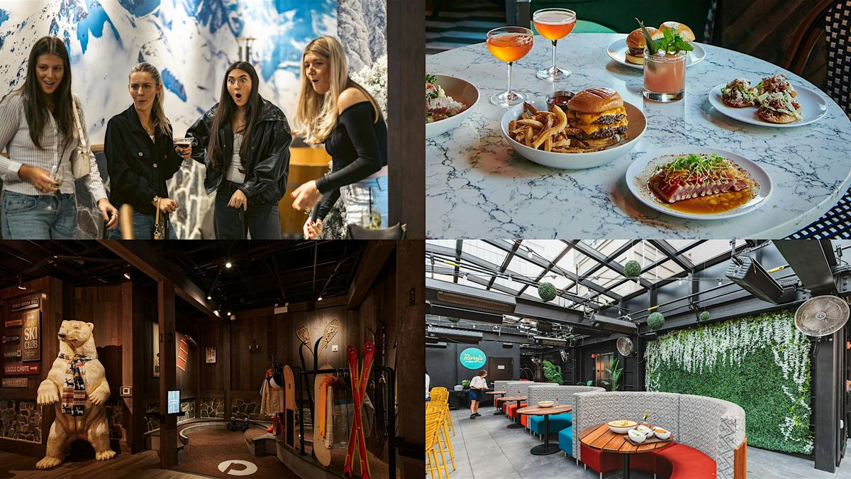 This ticketed brunch series at The Puttery combines a brunch entrée, a round of immersive indoor mini-golf, and bottomless mimosas for a lively, social weekend experience. To maintain a smooth and fair experience, bottomless mimosas are available for one hour and require full-table participation, meaning everyone seated at the table must be participating.
