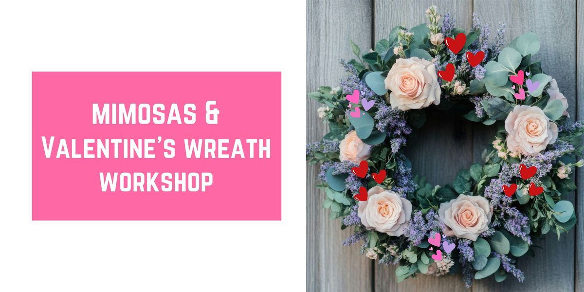 Create and decorate a beautiful Valentine's Day Wreath. Owner, Mayra Garcia, will guide and help students get creative with their wreaths. No experience necessary, all items are provided, including Mimosas for 21+. Non-alcoholic bevs available, you are also welcome to BYOB.