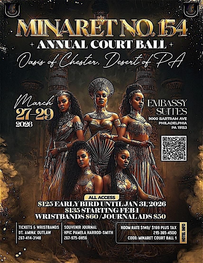 Room rates are $149.00/$169.00 per night plus tax. To reserve, please call 215-365-4500 and use the Code: MINARET COURT BALL 1.