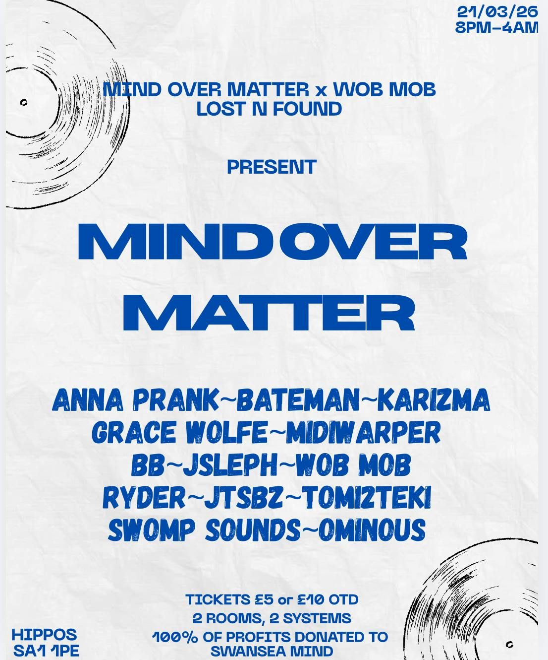 MIND OVER MATTER - SWANSEA We’re bringing the Mind Over Matter tour to Swansea with a night built around connection, community and supporting mental health! All In a safe, welcoming space where everyone’s got each other.