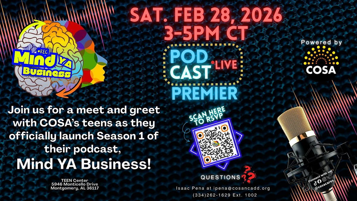 Join us for a live premiere and meet-and-greet with COSA’s teens as they officially launch Season 1 of their podcast, Mind YA Business!