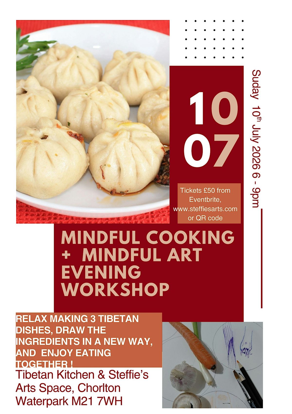 Tibetan Kitchen and Steffie's Arts Space are collaborating to bring you this unique, creative and mindful summer evening 3 hour workshop.