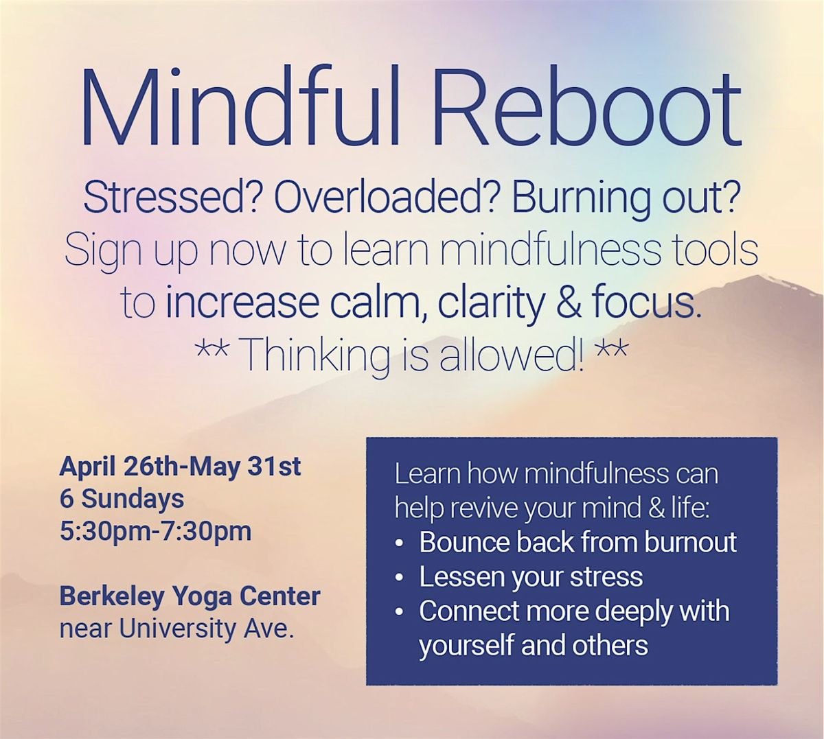 Info: April 26th – Foundations of Mindfulness.