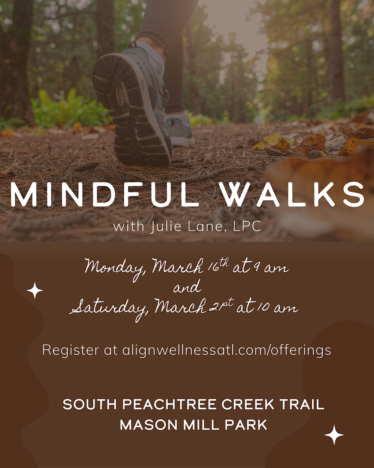Life keeps us moving so fast that we rarely slow down enough to truly be present. You’re invited to a meditative walk where you can ground yourself in nature and reconnect with your body. In shared silence, you can release stress and anxiety without the need to speak or explain, simply arriving as you are. Along the way, we’ll pause for a 10–15 minute guided meditation, deepening our connection to breath, body, and the natural world around us. This is a time to reconnect with your inner wisdom and feel held by the space we create together. Come join us in this experience where you can just be.