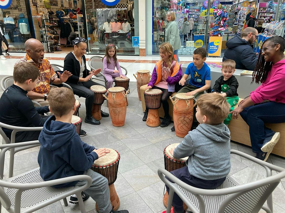An enjoyable time learning how to play the djembe drums, making friends , improves concentration, helps mental health. Relax, and have fun!