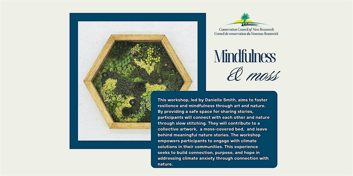 Join us for a workshop that blends art, nature, and community to foster resilience and mindfulness in times of crisis. Through guided reflection, grounding exercises, and shared storytelling, participants explore their experiences and build meaningful connections with others. Using slow stitching as a meditative, nature-inspired practice, they begin creating a personal piece of textile “moss,” embracing imperfection and presence while contributing to a larger collaborative artwork; participants will return their completed piece to be added to a collective “bed of moss.” The session provides a safe space to process eco-anxiety, strengthens a sense of belonging, and leaves participants with practical tools for mindfulness and inspiration to engage in climate action, while connecting them to the Conservation Council of New Brunswick’s broader community of practice.
