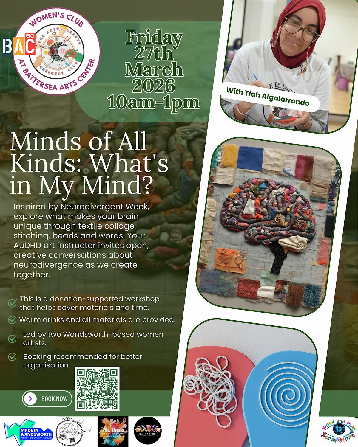 Inspired by Neurodivergent Week, this workshop invites you to explore what makes your brain unique through textile collage, stitching, beads, and words. Guided by an AuDHD art instructor, participants are encouraged to engage in open, creative conversations about neurodivergence while creating in a supportive and inclusive space.