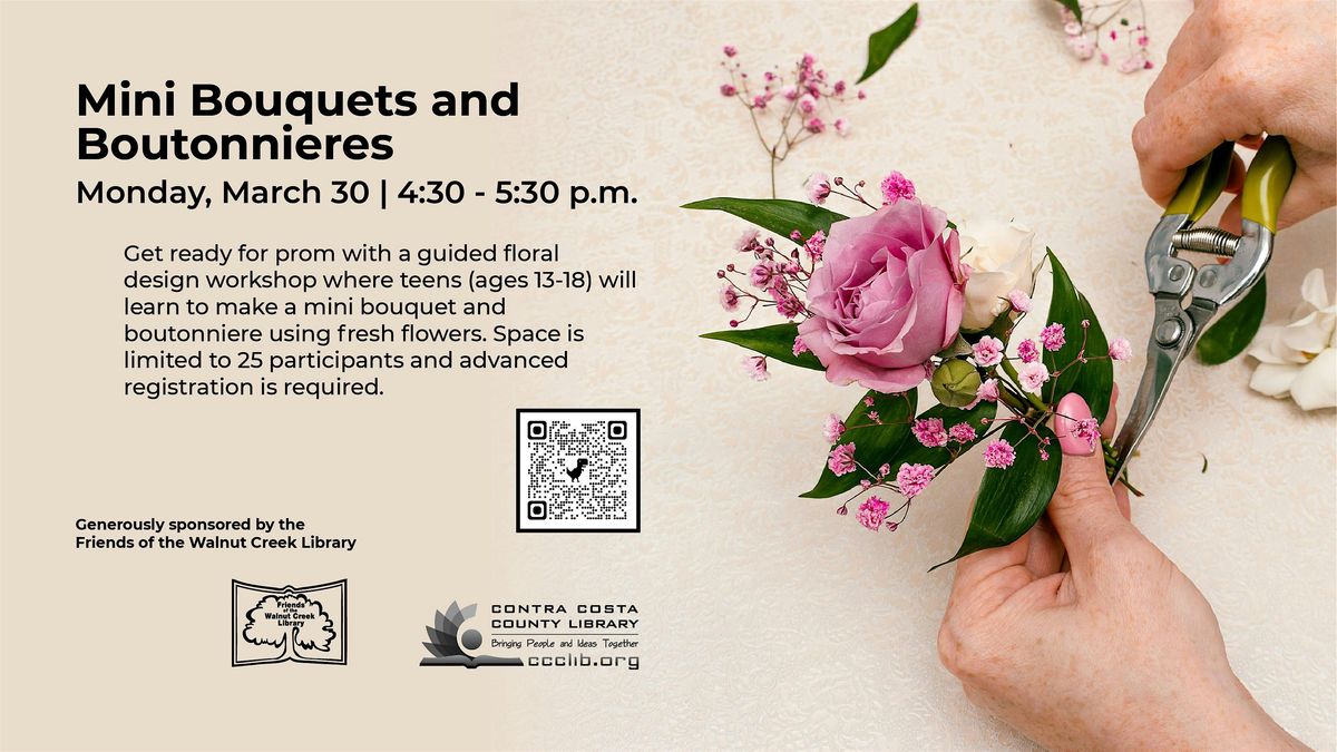Get prom-ready with flowers that are as unique as you are! Join us for a hands-on floral design workshop where teens will learn how to create their own mini bouquet and boutonniere using fresh flowers. A professional florist will guide participants step-by-step, sharing tips and techniques for designing beautiful, prom-perfect florals to take home.