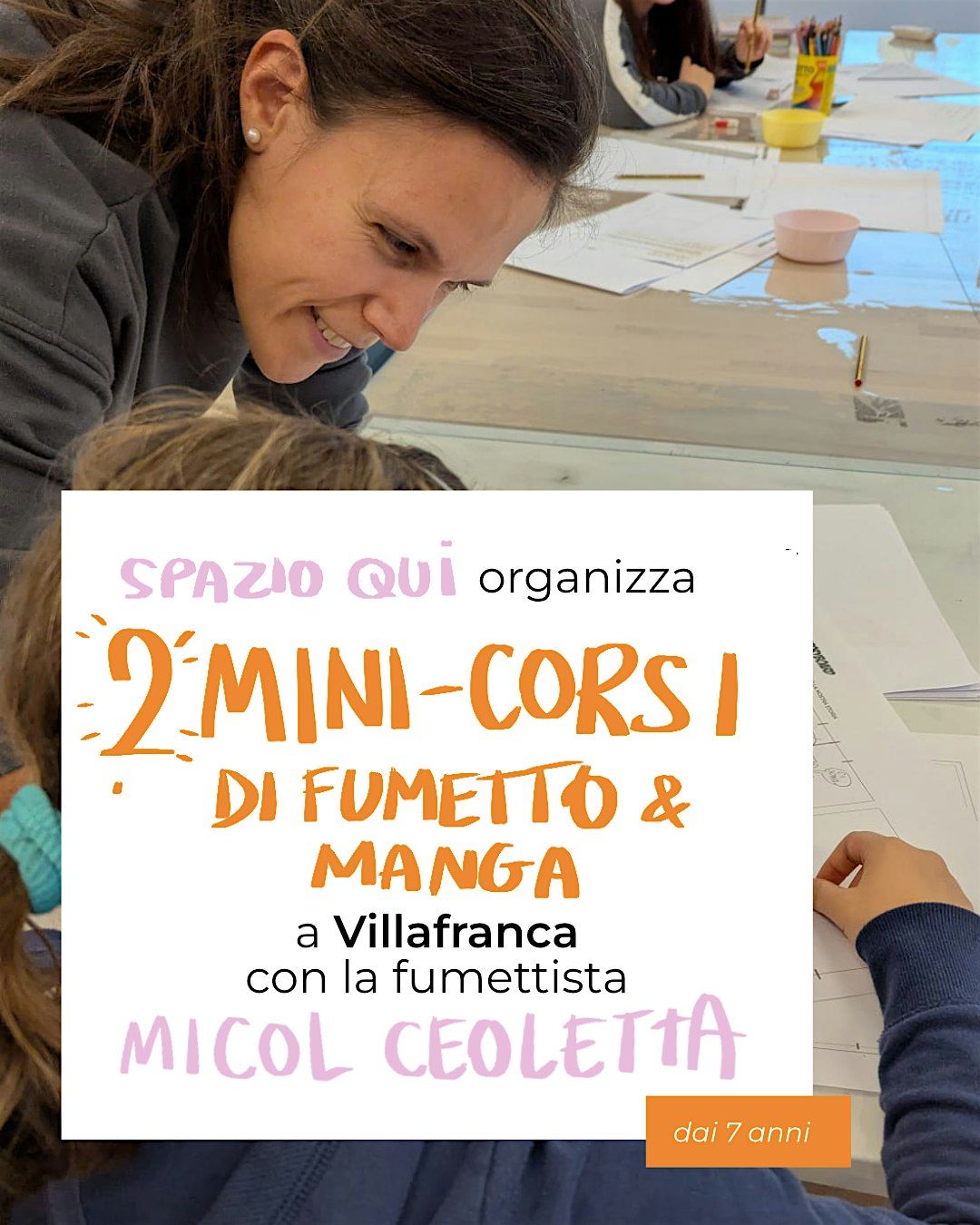 Un mini-corso in tre appuntamenti pensato in modo giocoso per avvicinare i bambini al mondo del fumetto e del manga, ma anche per dare i primi rudimenti di disegno, dalle proporzioni alla figura umana. Chi non ha ancora iniziato a disegnare verrà guidato all'introduzione generale dei concetti base.
