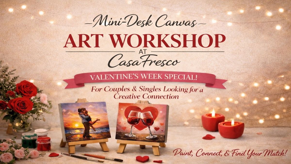 Unwind, paint, and connect in this cozy mini desk canvas workshop—perfect for beginners and art lovers alike. No prior art skills needed; you’ll be guided step-by-step from the basics, with all materials provided.Create your own mini canvas masterpiece to take home—perfect to brighten your office desk or add a creative touch to your home shelf.Held at the onset of Valentine’s Week, bring your partner for a romantic art date and craft a moment together, or come solo and meet like-minded creatives over colors and conversation.Enjoy complimentary snacks as you paint, sip, and let creativity flow.Event Organiser: Shiuli Guchait in partnership with Casa Fresco