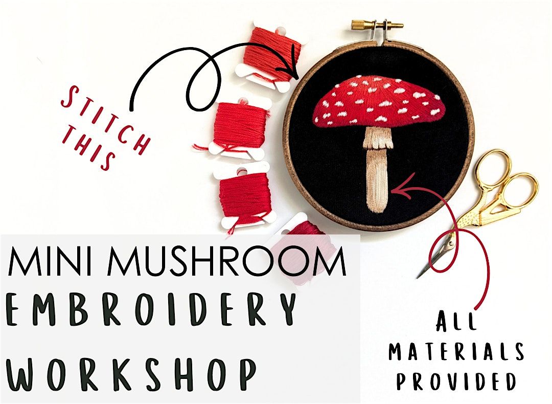 Join us for a fun in-person workshop where you'll learn to create adorable mini mushroom embroidery! Perfect for beginners or anyone looking to pick up a new crafty skill. Thread painting has become a new contemporary embroidery technique designed to create realistic embroidery artwork, led by Elysian Fyre, an embroidery crafter and artist, through out this workshop you will be taught the basic of embroidery and the technique of long and short stitch so you can create a 4" mini mushroom embroidery that can be displayed. Bring your creativity and get ready to stitch away in a relaxed, friendly space. All materials provided.
