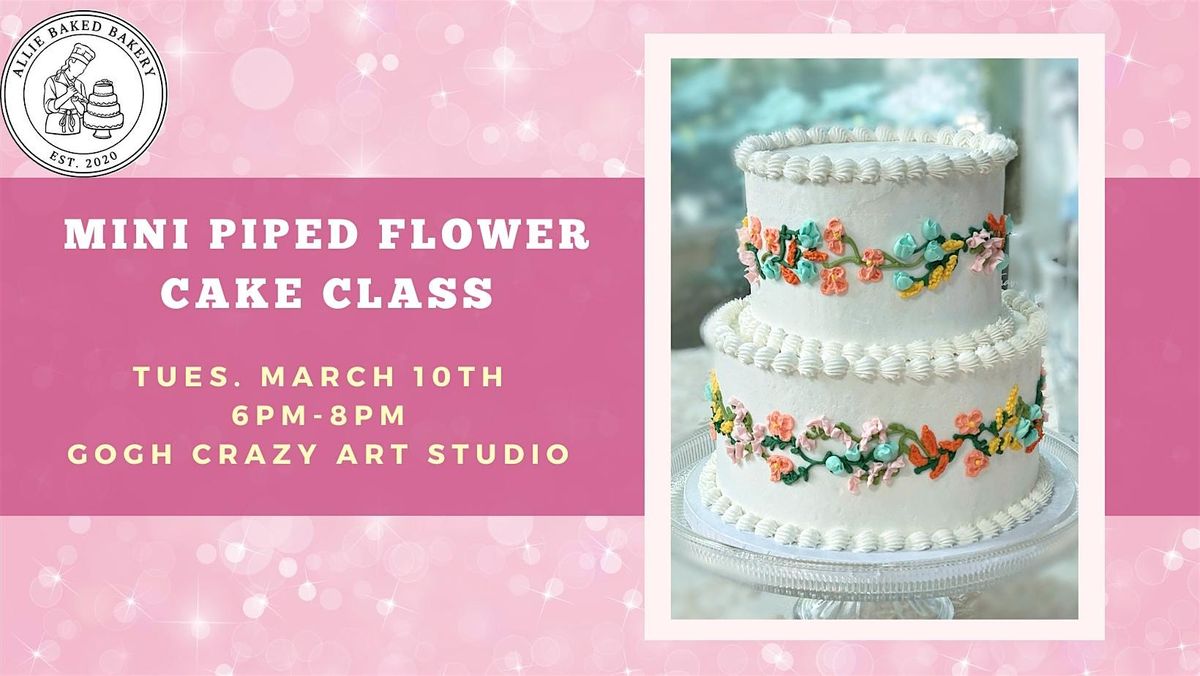 I'm so excited to present a new design for my students to learn! In this class, students will use various piping tips and detail bags to create a floral and greenery border around the center of the cake. Students will also learn to apply and smooth a base coat of icing, add top and bottom borders. This class is perfect for anyone with minimal experience in cake decorating or art, or experienced bakers looking to polish up or learn a new technique! Each participant will decorate (and take home!) a 6in, 2 layer vanilla or chocolate cake with vanilla buttercream. Participants will have all tools provided for them.