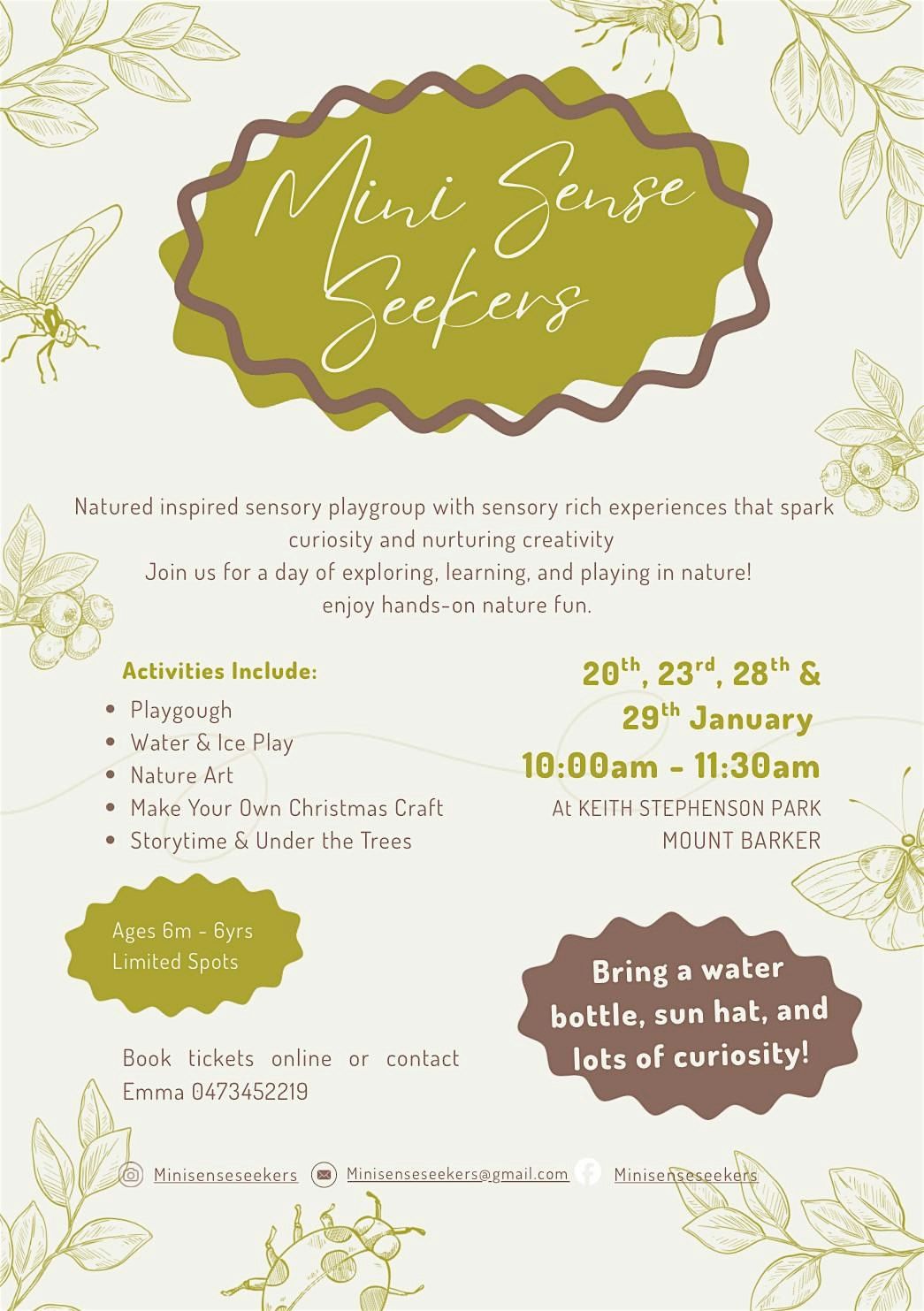 Mini Sense Seekers is a sensory playgroup led by an experienced dipolma qualified childhood educator.About this Event