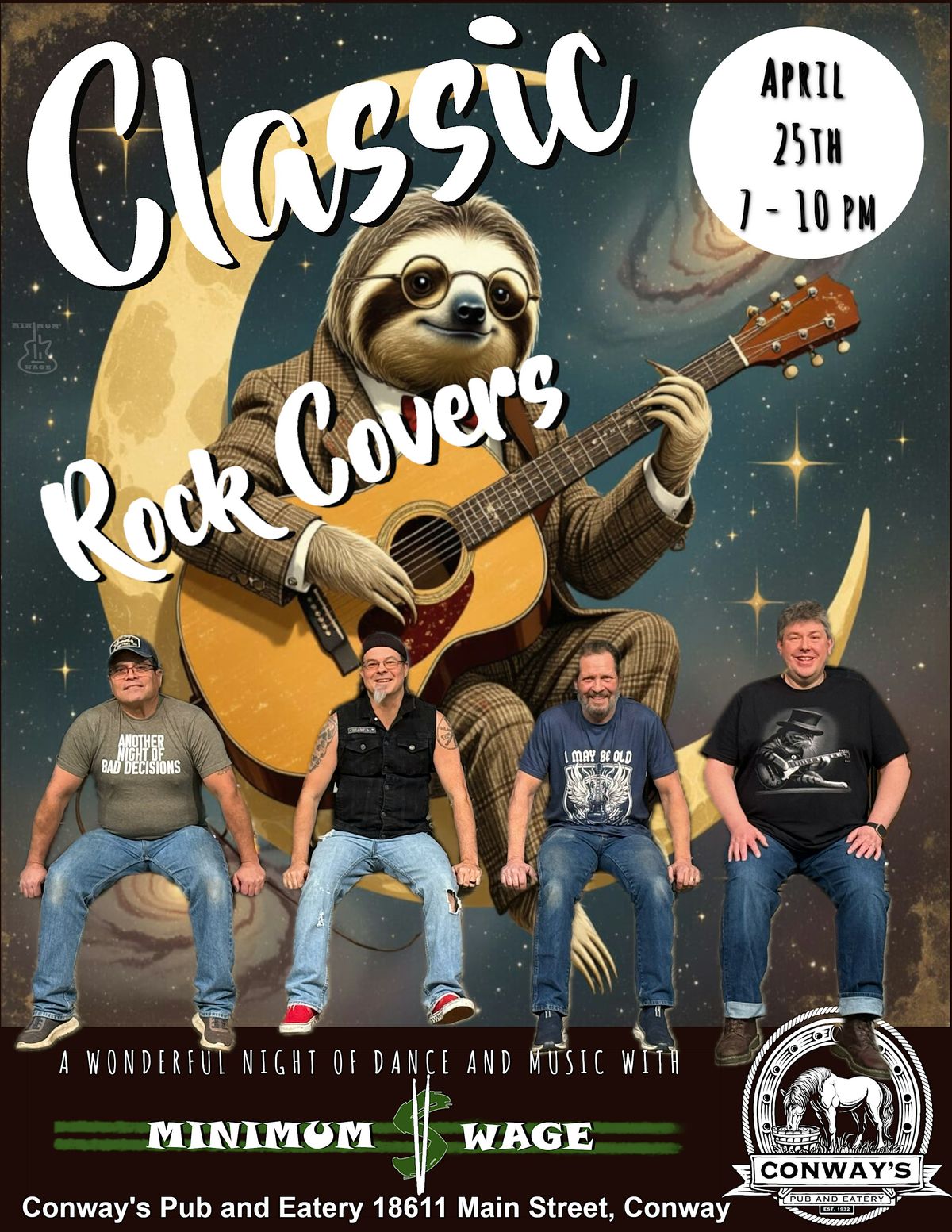 Join us for an awesome night with Minimum Wage Band rocking the house at Conway's Pub and Eatery. It's an in-person event filled with great vibes, cool tunes, and good company. Come hang out, enjoy the music, and make some unforgettable memories. Don't miss out!
