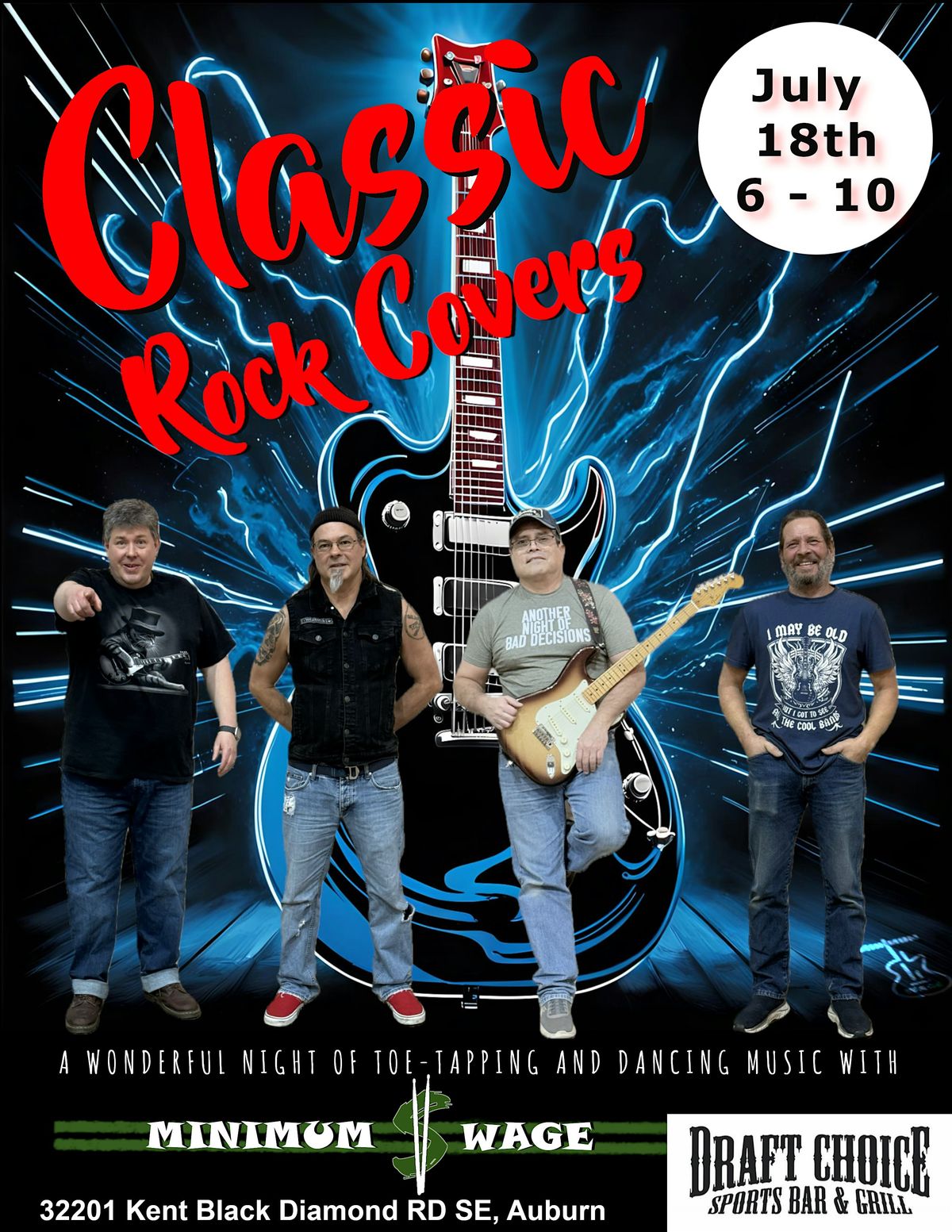 Minimum Wage Band is back and bringing the vibes to Draft Choice Sports Bar! Join us for an awesome in-person show filled with great music, good times, and cool people. Whether you’re a longtime fan or just looking for something fun to do, this is the place to be. Don’t miss out on an unforgettable night with Minimum Wage Band rocking the house!
