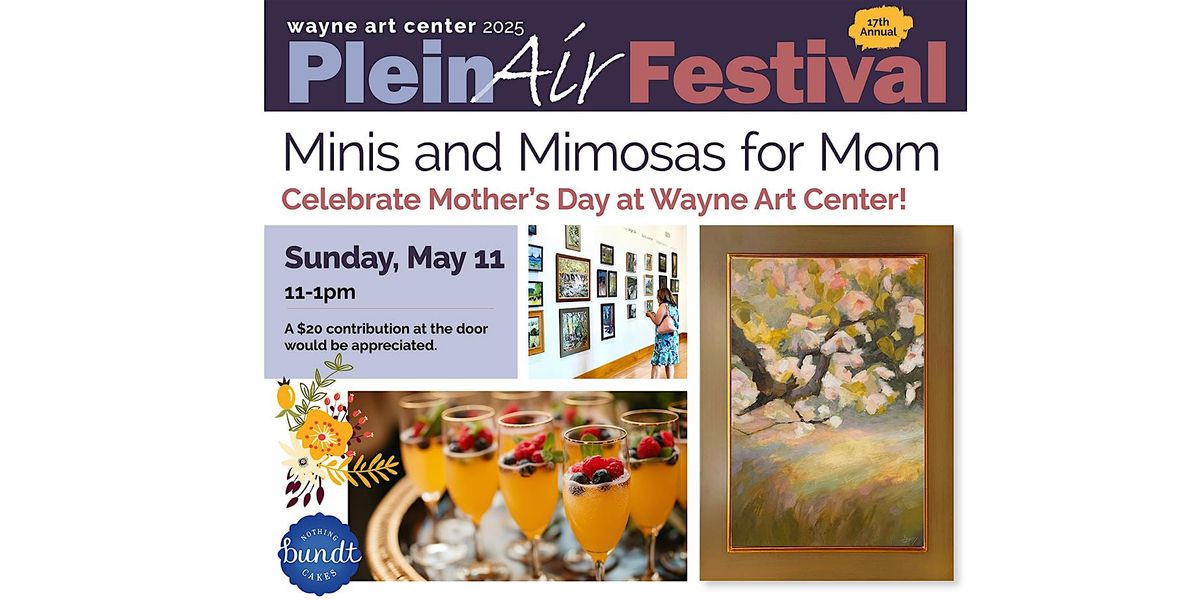 Celebrate with a special toast to mothers with complimentary mimosas, artisanal handcrafted chocolates and Bundtinis! Stroll through the galleries to view a special exhibition of miniature paintings as well as over 300 freshly painted pastoral and urban landscapes by the Wayne Art Center 2025 Plein Air Festival’s 32 nationally recognized artists. All works of art are for sale. Visit our Gallery Shop for additional Mother’s Day gifts!