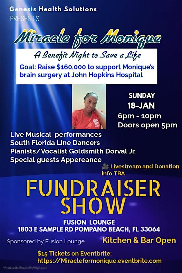Get ready for an unforgettable life-saving fundraiser show that's all about hope, love, and community. This in-person event brings people together to support a truly amazing cause. Come share the good vibes, enjoy great performances, and make a real difference. Let's rally behind Monique and show what we can do when we unite!