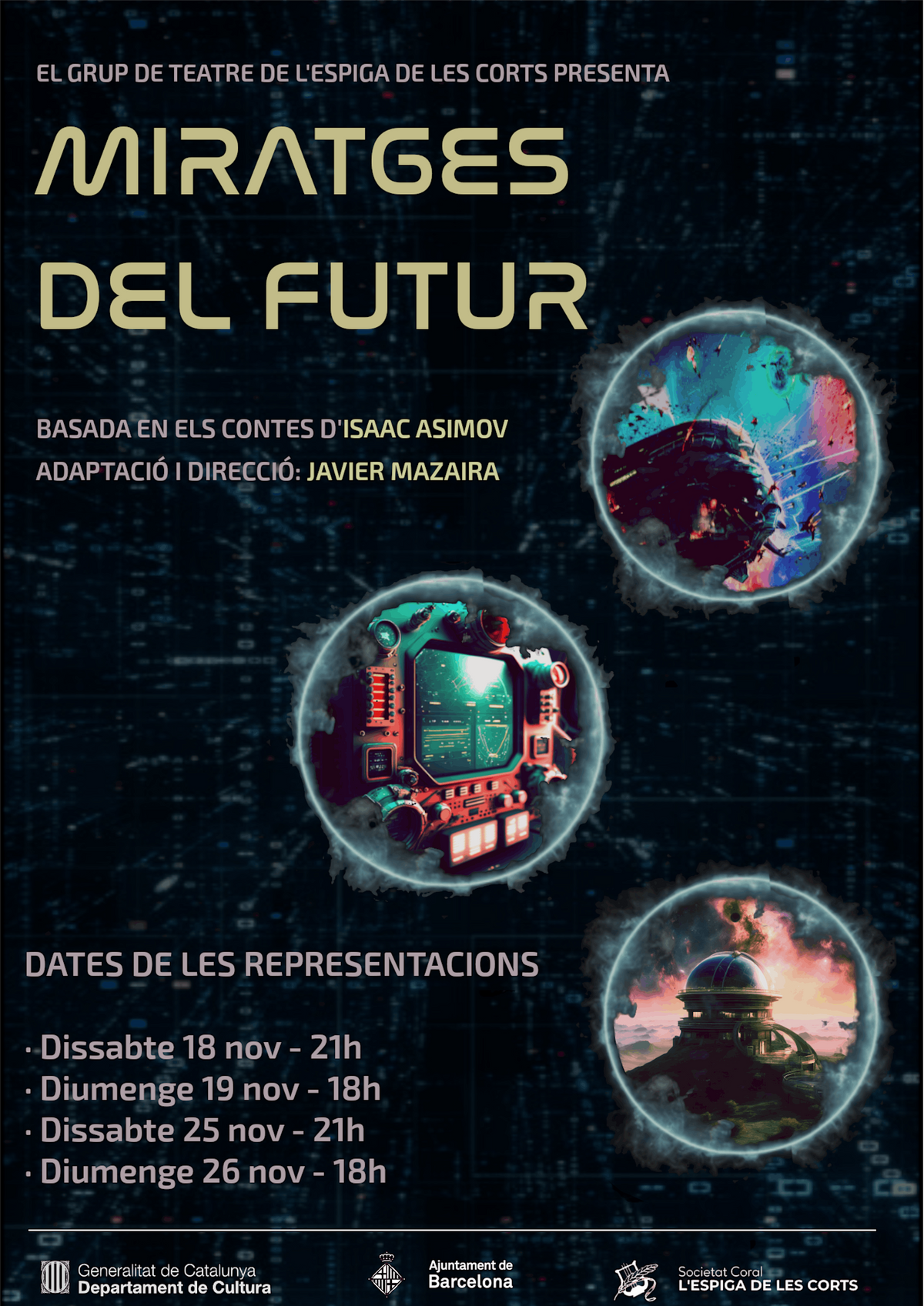 L'Espiga de les Corts presenta una obra de teatre basada en una adaptació de relats d'Isaac Asimov, on intenta posar un mirall a l'espectador, a banda de distreure'l, tal com pretenia l'autor.