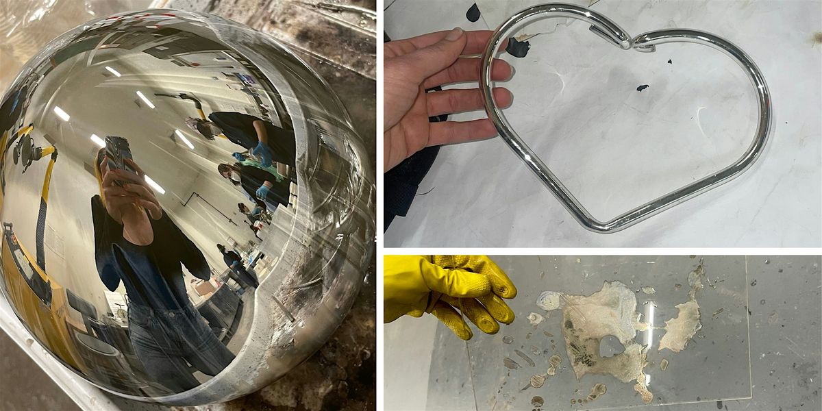 Join James Akers and Kacie Lees to turn glass into mirror! In this 3-hour workshop, participants will learn the basics of coating flat and blown glass forms with our two-part mirroring chemical solution mixed by instructors. BYOGlass, no glass will be supplied for this event. After mirroring our creations, the party continues with pizza and discussion in the classroom. New to mirroring? New to glass? All are welcome!