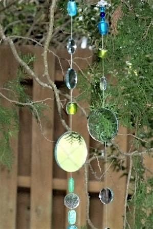 Mirrored sun-catchers are a beautiful way to add sparkle indoors or out! They look beautiful hanging on trees or shrubs and reflect all the natural colors in your yard. This sun-catcher is made with 10 mirrors 1 and 2 inches in diameter, a thin satin ribbon and beads in a variety of colors for you to choose from.