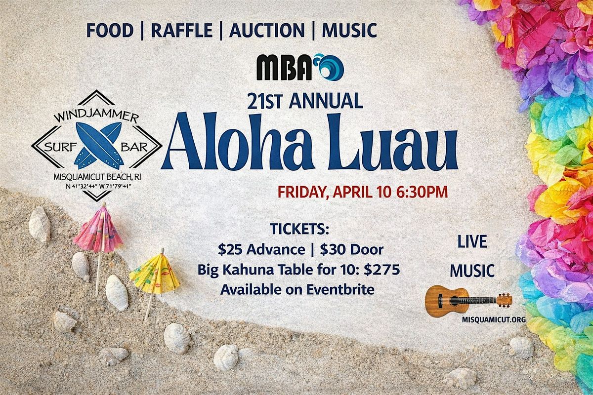Join us for a tropical extravaganza at the Windjammer Surf Bar in Westerly, RI, USA! The Misquamicut Beach Luau is the ultimate beach party you don't want to miss. Get ready for a night of fun, music, and delicious food as we celebrate the Misquamicut Business Association in style. Put on your favorite Hawaiian shirt and hula skirt! Monies raised from admission, silent auction and raffle benefit beach area cleanup and family friendly events at the beach.