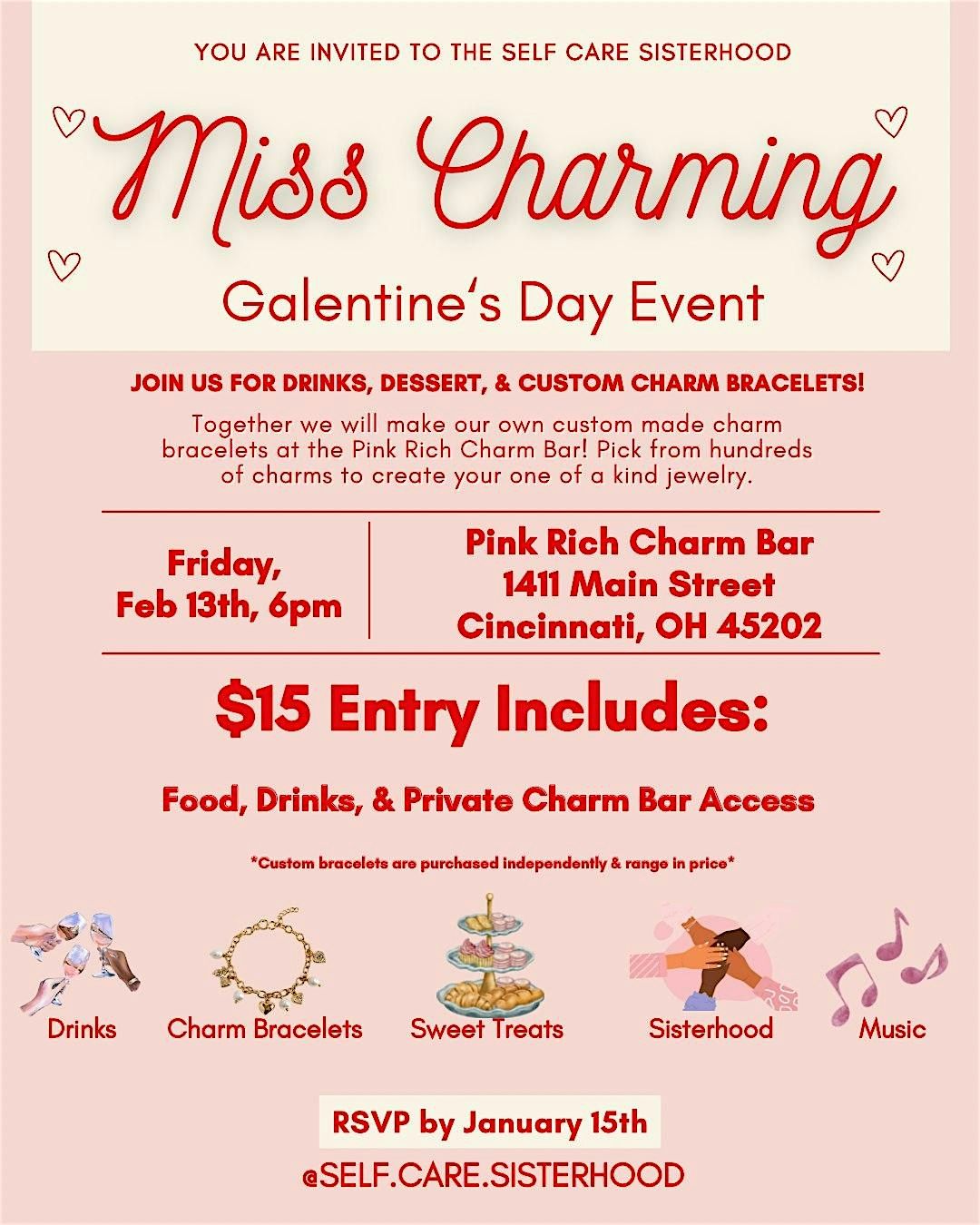 Join us for food, drinks, & custom charm bracelets! Select your choice of charms, chains, and accessories to make your own of a kind jewelry!