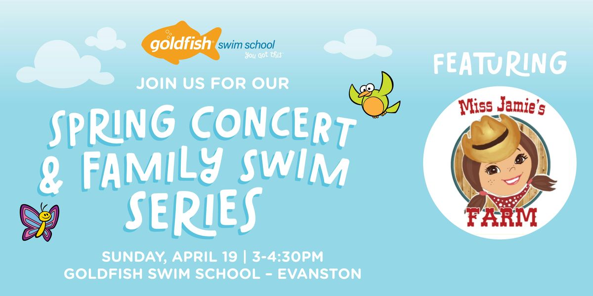 Miss Jamie's Farm is coming to Goldfish - Evanston! Join us on Sunday, April 19th for a FREE Family Swim Event.