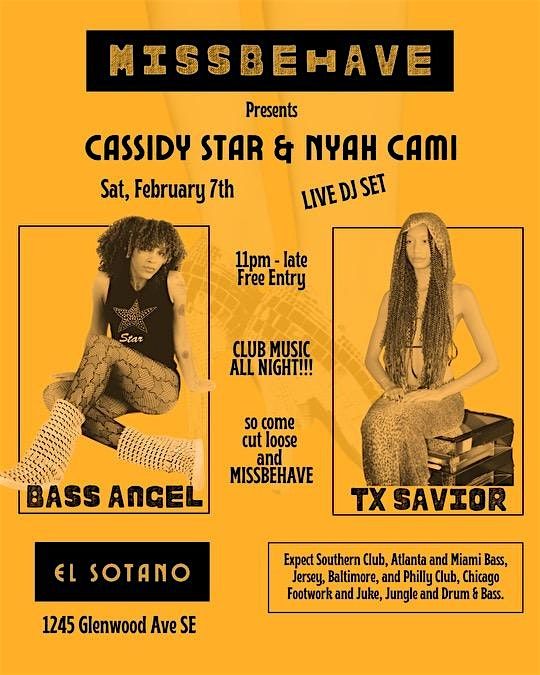 Join us for the first Missbehave party. Expect Southern Club, Atlanta and Miami Bass, Jersey, Baltimore, and Philly Club, Ghettotech, Chicago Footwork & Juke, Jungle, Drum & Bass. Come cut loose and misbehave!
