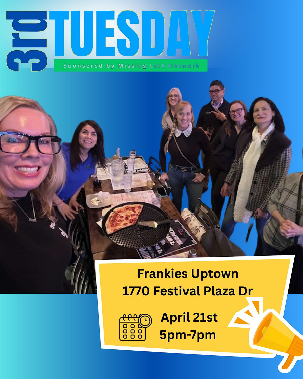 Join us in person for the Missing Link 3rd Tuesday Business Networking event! It's the perfect chance to meet new people, share ideas, and grow your network in a relaxed and friendly atmosphere. Don't miss out on connecting with like-minded professionals and boosting your business opportunities. See you there!