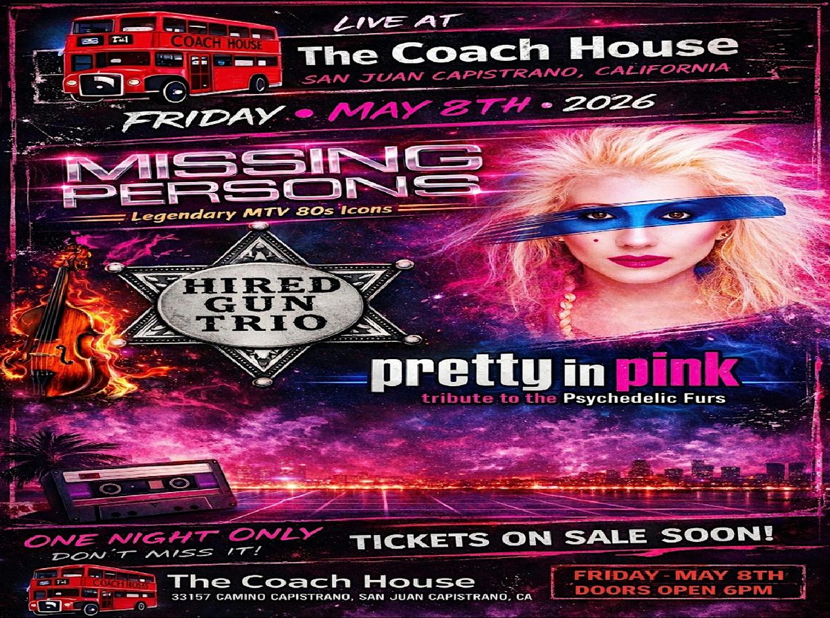 In support of legendary new wave pioneers Missing Persons will be Pretty in Pink: A Tribute to the Psychedelic Furs. Pretty in Pink delivers an electrifying and authentic homage to The Psychedelic Furs, capturing the raw emotion, signature sound, and timeless hits that defined a generation—from “Love My Way” to “Pretty in Pink.”