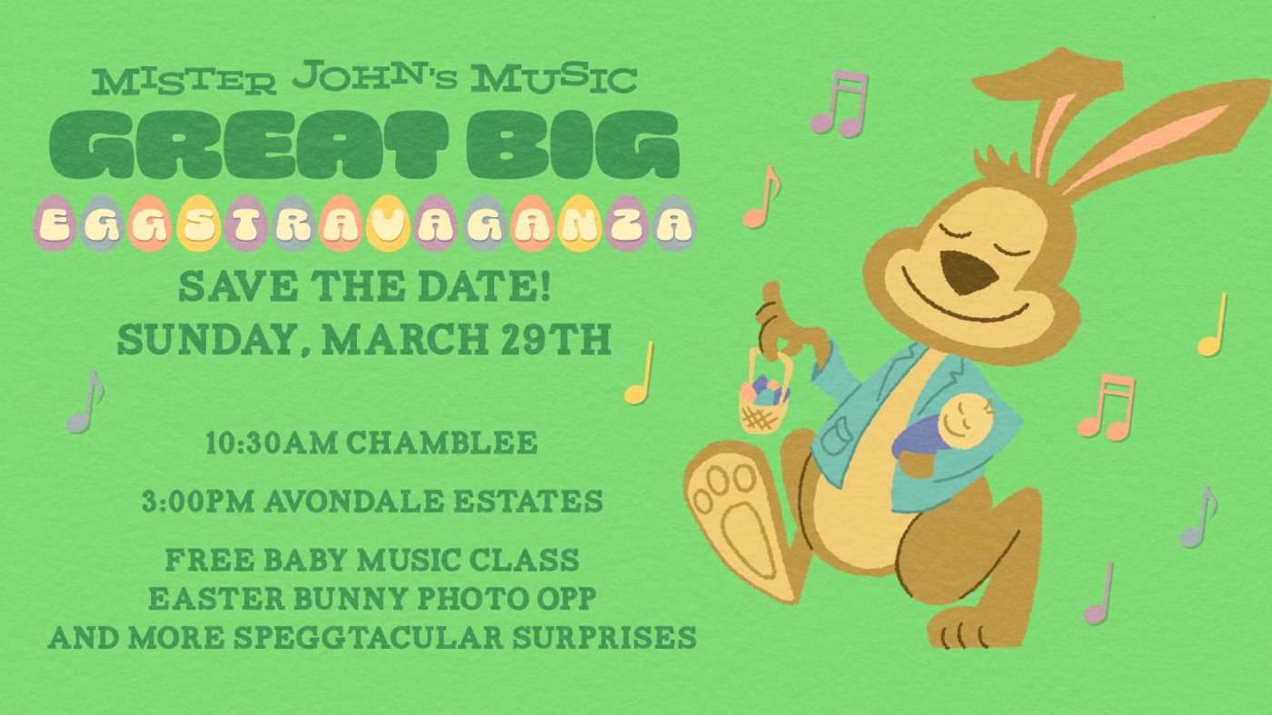 Join us on Sunday, March 29th for a free outdoor baby music class, eggstra-silly surprises, and a chance to snap a photo with our very cute (and very fluffy) Easter Bunny. Expect shakers, bubbles, dancing, and all the feel-good community vibes you love about Mister John’s.