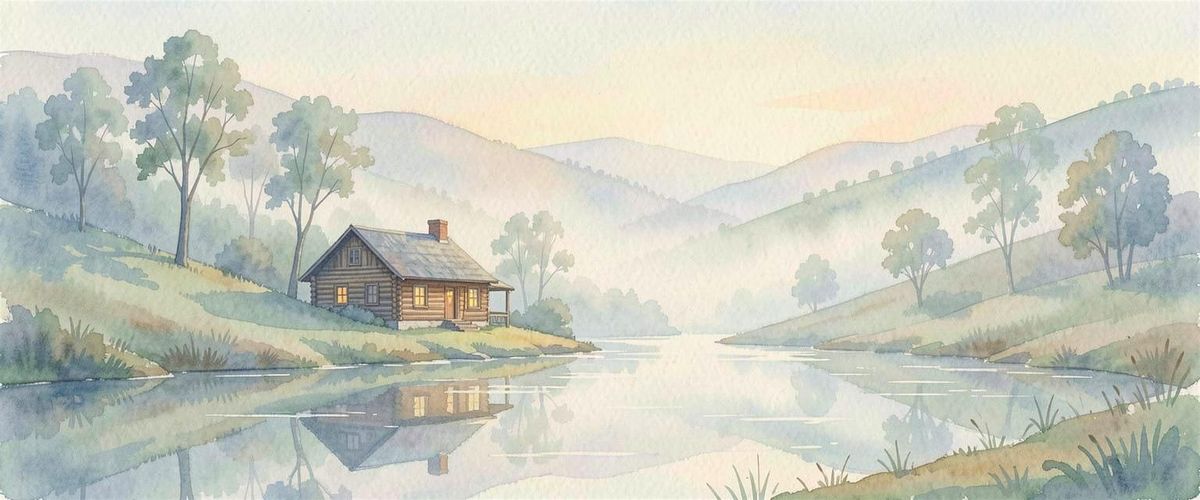 Misty Morning Watercolour Landscape Painting